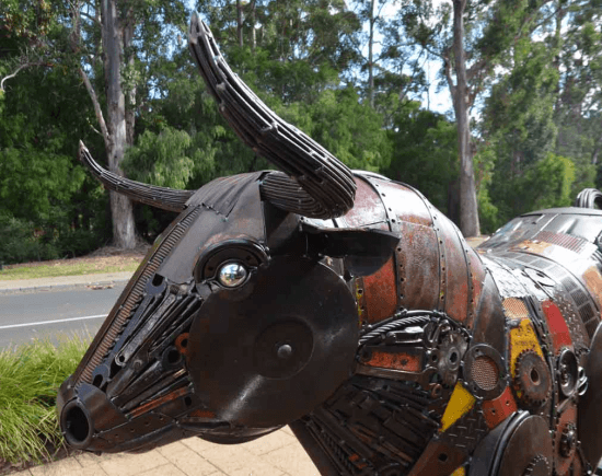 Continuing east, we pass through the town of Quairading where you can see the century-old pub that allegedly caused the downfall of Dangin. Near the town hall, you may spy 'El Toro', the four-metre-long, half-tonne Jordan Sprigg sculpture of a Spanish Fighting Bull. Despite being made from old tools, machine parts and farm scrap, El Toro looks alive and ready to charge right down the main street. In the Information Centre housed in the old railway station, you can find an exhibit of natural sculptures by the late Ian Wills. Like many local museums though, it is staffed by volunteers, and opening times may vary.